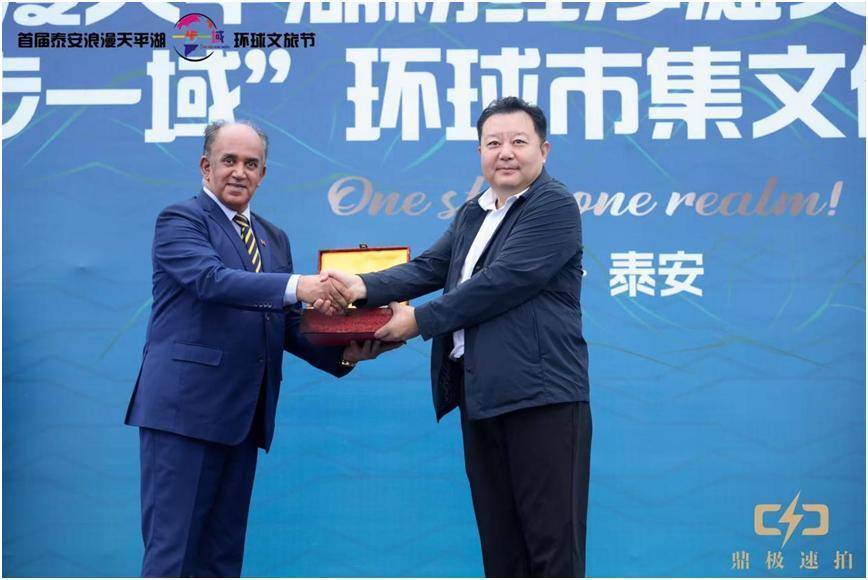 活动前期筹备与预热环节紧密衔接,9月27日,首届泰安浪漫天平湖“一步一域”环球文旅节启幕仪式隆重举行。泰安市副市长唐传营、泰安旅游经济开发区党工委书记朱英文、泰安旅发集团董事长罗士贞、泰安旅发集团总经理苗伟、“一步一域”项目创始人赵俊等出席此次启幕仪式,突尼斯驻华大使阿迪勒·阿拉比、罗马尼亚驻华公使克劳迪·弗洛瑞安、突尼斯国家旅游局首席代表阿诺尔·柴托等国家驻华代表受邀至安泰山天平湖亲临开幕式现场;中外文艺界人士也精彩助力,突尼斯男高音歌唱家Hassen Doss与比利时籍网红达人小GeoGeo、山东籍小演员Tammy甜蜜蜜献唱经典法语曲目,用悠扬歌声唱出中外友谊之声,来自中国的网络歌手棉子、时尚集团副总裁余辉、中粮旗下凯莱集团总经理薛鹏程等知名人士齐聚一堂,共同见证文旅节的启幕,为活动注入浓厚的国际交流氛围与艺术活力。同日,副市长唐传营向“一步一域”合作伙伴代表亚洲青年艺术家提名展、鹿鸣机器人、突尼斯展售商等颁发优秀合作伙伴荣誉为10月1日至10月8日开幕的“一步一域”环球市集造势升温。